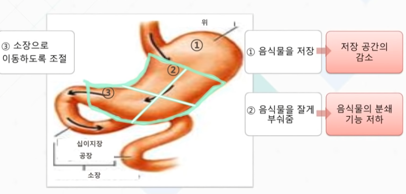 위는 음식물을 저장하고, 소장으로 이동이 편하게 음식물을 잘게 부숴주어 이동이 자연스럽게 이동하로록 하는 역활을 하고 있습니다.