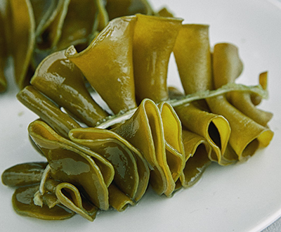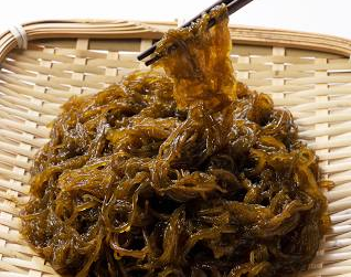 세계 최고의 품질은 일본 오키나와 산 모즈쿠가 최고의 품질로 알려져 있습니다. 오키나와 하면 장수촌으로 많이들 아시잖아요. 이 모즈쿠가 어떤 원인이라는 분석도 있었습니다. 면역 활성화라든지 그 외에 여러 가지 효능이 있는 것으로 알려진 성분입니다. 색깔은 갈색을 띄고 있는데 약간 짙은 갈색을 띄고 있는 성분이 모즈쿠입니다.