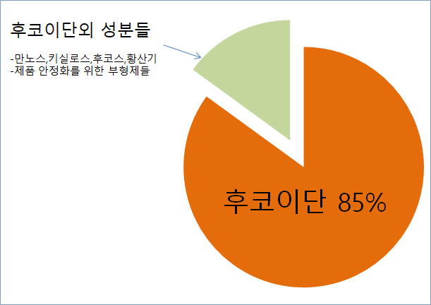또한 후코이단을 만들 때, 그리고 건강식 일반적으로 만들 때 제품을 안정화시키고 굳어지지 않게 하기 위해서 부형제들이 들어갑니다. 그렇기 때문에 후코이단만 100% 들어있을 수가 없습니다.