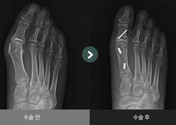 - 수술 후 통증이 심하고, 교정된 뼈의 강도가 약해 추가적인 금속핀, 나사 고정 및 이를 제거하기 위한 2차 수술이 필요했습니다.